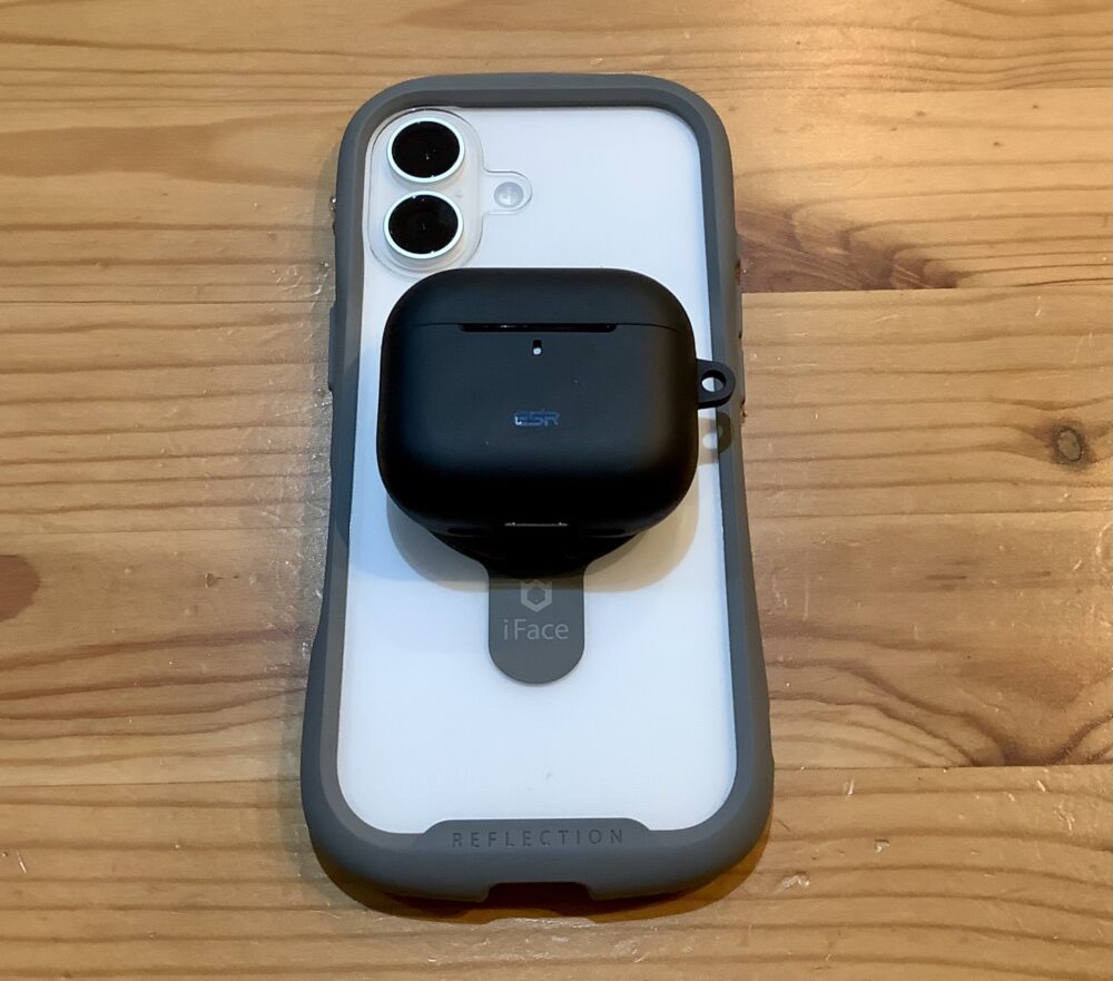 ESR HaloLockは黒が選べるのでAirPodsを黒くすることができて黒く統一することができました。